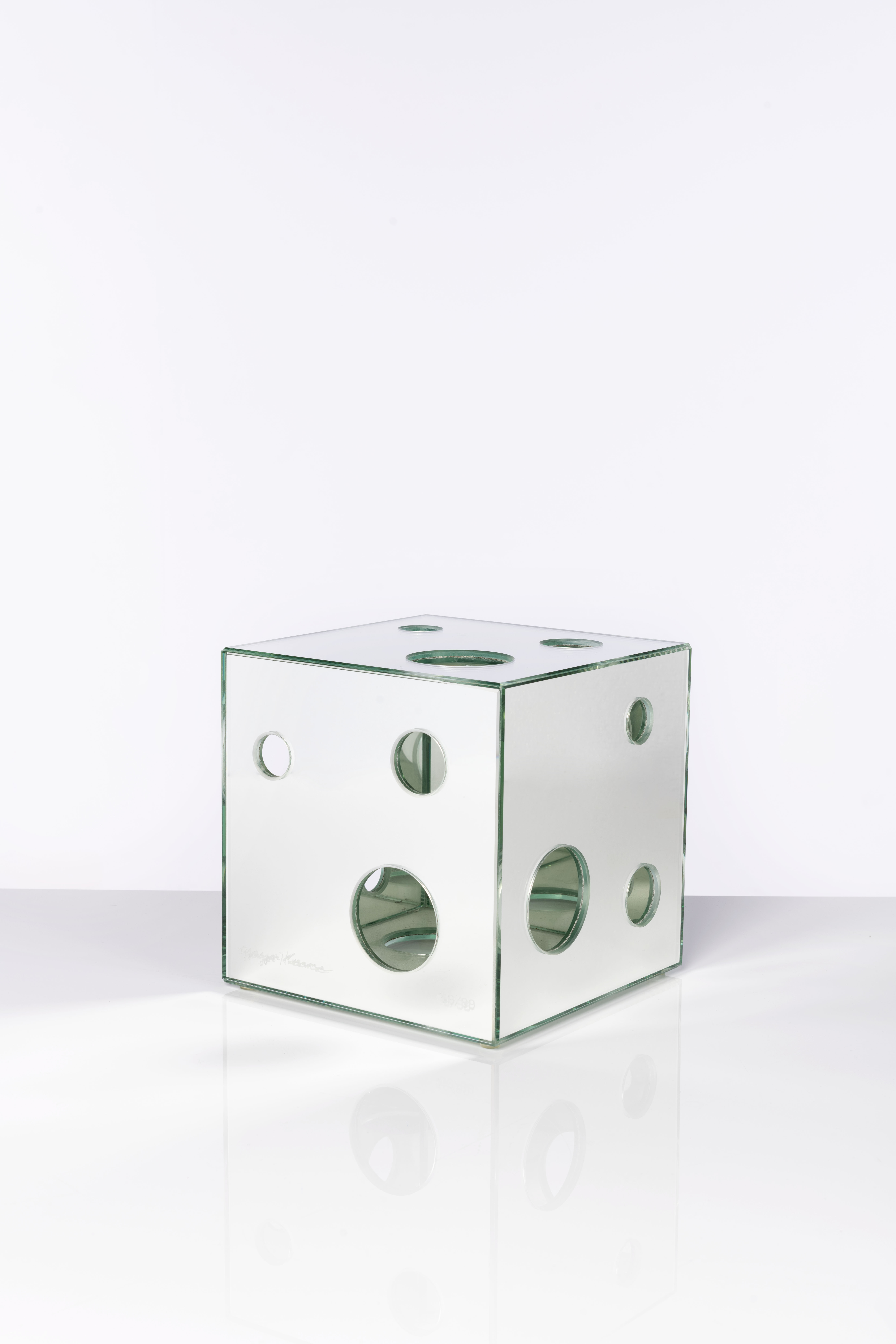 Yayoi Kusama a par la suite imaginé des créations accessibles de l’extérieur. De cette manière, il a reproduit ces sensations à l’échelle de la Mirror box. En effet, les spectateurs sont incités à regarder à l’intérieur du cube à travers ses hublots afin d’observer les différentes formes circulaires qui s’y reflètent à l’infini. Ainsi, l’observateur se retrouve projeté dans un espace qui semble indéfini dans lequel flotte les cercles. L’apparence du cube sera changeante selon les conditions environnementales De cette façon, les couleurs se différencient en fonction de l’évolution de la luminosité et suivant la pièce où il se trouve. Le spectateur est ainsi en immersion et se retrouve acteur d’une expérience unique et originale.