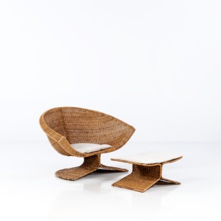 Miller Yee Fong (né en 1941) Modèle Lotus Fauteuil et ottoma ...