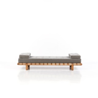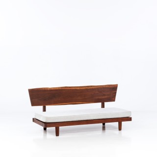 ƒ Edward Wormley (1907-1995) Méridienne Noyer et tissu E ...