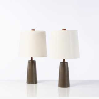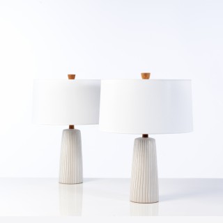 Gordon & Jane Martz (XXe) Paire de lampes Céramique, noyer e ...