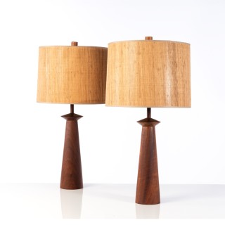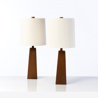 Gordon & Jane Martz (XXe) Paire de lampes Noyer et laiton ...
