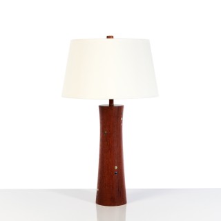 Jane et Gordon Martz (XXe) Lampe Noyer, laiton et céramique ...