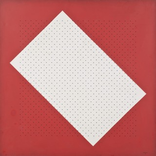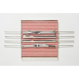 Julio Le Parc (né en 1928)Formes en contorsion sur trame rouge, 1968