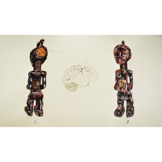 Frédéric Bruly Bouabré (1923- 2014, Ivory Coast) Céleste vision (la montée de l'Humanité au ciel: un nuage blanc figurant un homme), 20