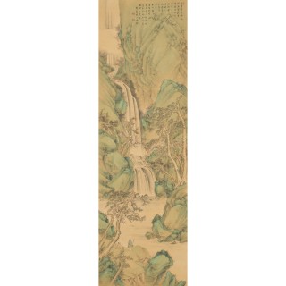 JAPON - Début Époque EDO (1603-1868)Paravent à quatre feuilles, encre sur papier, paysage montagneux et lacustre. Signé de trois cac...