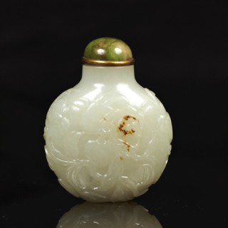 CHINE - Époque KANGXI (1662-1722)Coupe libatoire en porcelaine émaillée blanc de Chine en forme de corne de rhinocéros à décor en ha...