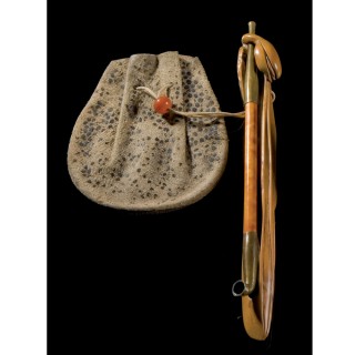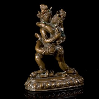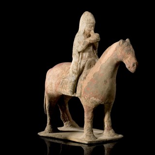 CHINE - Époque TANG (618-907)Statuette de cavalier jouant de la flûte posé sur