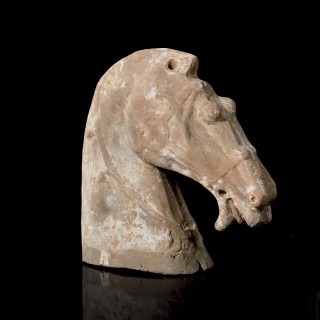 CHINE - Époque HAN (206 av. JC - 220 ap. JC)Tête de cheval en terre cuite.