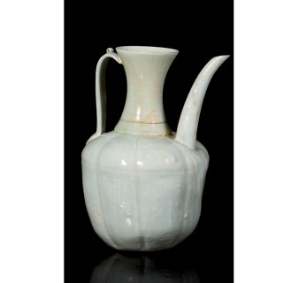 CHINE - Époque SONG (960 - 1279)Verseuse Qinbai à corps godronné et au col