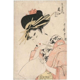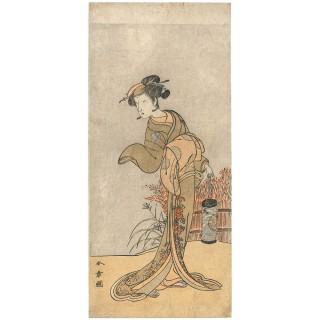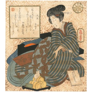 Madoya ?Surimono shikishiban, jeune femme dans une