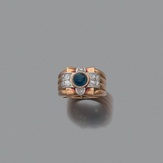 Bague ancienne en or jaune 18k (750‰) et platine (850‰) formant ...