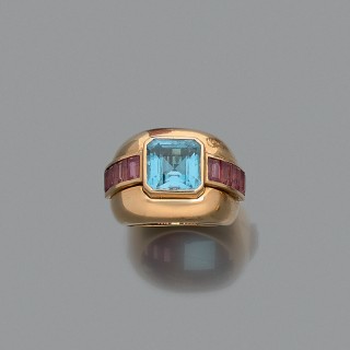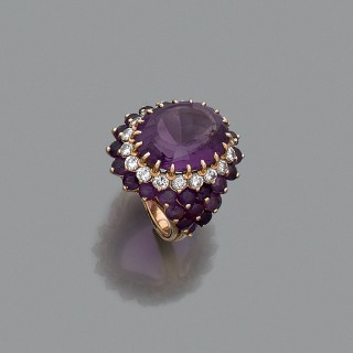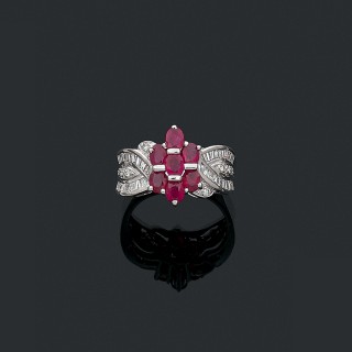 Bague Pompadour en or 18k (750‰) et platine (850‰) ornée d'une é ...