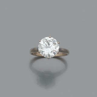 Bague en or gris 18K (750‰) ornée d'un diamant taille brillant monté en solitaire.Tdd : 51