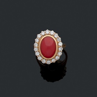 Chapelet en or jaune 18K (750‰) agrémenté de perles de corail, l ...