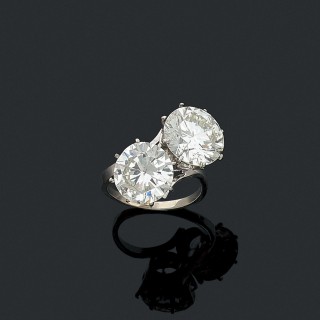 Bague "Toi et moi" en or gris 18K (750‰) ornée de deux diamants taille brillant. Années 1980.Tdd : 53. Poids brut : 6,7 g