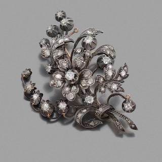 Broche "Gerbe" en argent et or jaune, ornée de diamants taille ancienne et taillés en rose