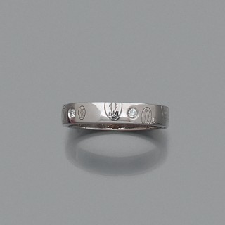 CARTIER. Anneau en or gris 18K (750‰) agrémenté du sigle de la m ...