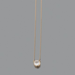 Collier chaîne en or jaune 18K (750‰) maille forçat orné d'un diamant taille ancienne serti clos calibrant 1,10 carat environ (égris...