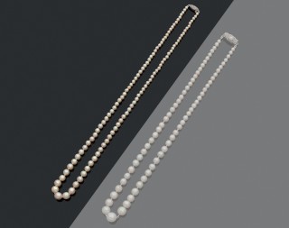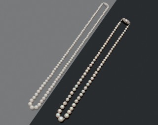 Collier de 100 perles fines en chute et de 9 perles de culture. ...