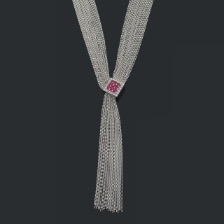 Collier rivière en or gris 18K (750‰) et argent orné de 63 diama ...