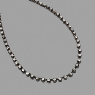 Collier rivière en or gris 18K (750‰) et argent orné de 63 diamants taille ancienne sertis sur argent (800‰), (quelques pierres chan...