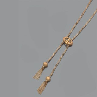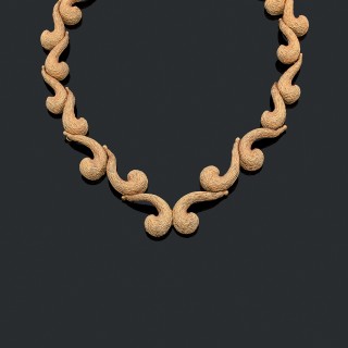 Parure dans le goût antique en or jaune et corail. Elle se compose d'un collier draperie et d'une paire de clips d'oreilles (les att...