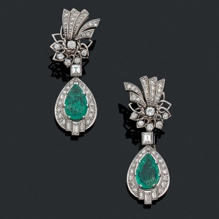 Paire de pendants d'oreilles en platine (850‰) et or gris 18K (7 ...