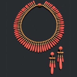 Parure dans le goût antique en or jaune et corail. Elle se compo ...