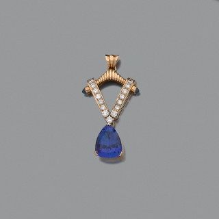 Pendentif en or jaune 18k (750‰) et argent (800‰) agrémenté de d ...
