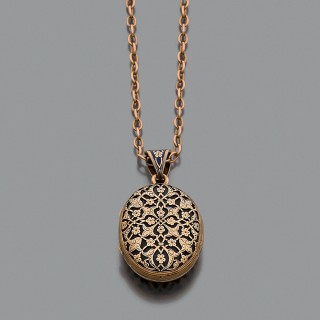 Pendentif porte-souvenir ouvrant en or jaune 18K (750‰) à décor ...