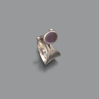 Bague en or gris 18K (750‰) à fils centrée d'un saphir ovale cal ...