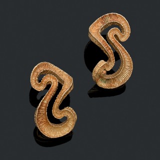 Paire de boutons de manchettes en or jaune 18K (750‰) torsadé et ...