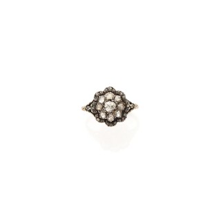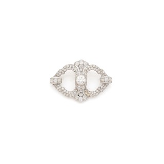 Lozenge brooch, Art Déco period, in platinum entirely paved with vintage-cut diamonds, in the