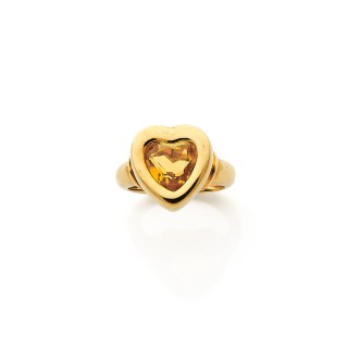 Heart ring in 18k (750‰) yellow gold adorned with a facetted heart-cut citrine