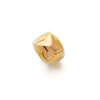 Sugar-loaf shaped ring in 18k (750‰) gold in three tones
