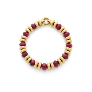 Ring in 14k (585‰) yellow gold adorned with garnets and diamonds arranged in pairs