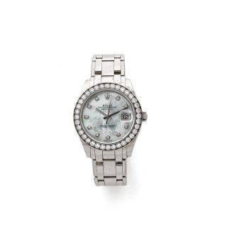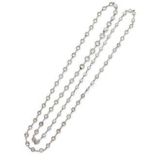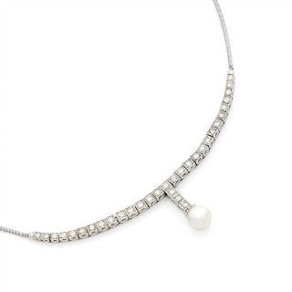 Pearl necklace, most likely natural, with a tassel of small pearls, mounted on platinum (850‰) set with rose-