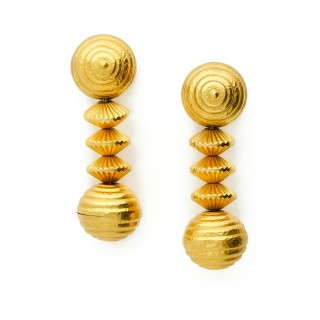 Ilias LALAOUNIS Pair of ear pendants in 22k embossed yellow gold