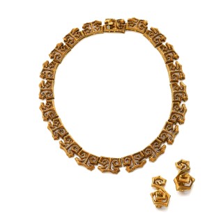 Ilias LALAOUNIS Naturalist jewelry set in 18k (750‰) chiseled yellow