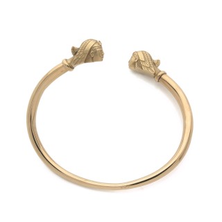 ADLER "Cuff" bracelet in 18k yellow gold (750‰) adorned on its ends with lines of alternating round and baguette-cut diamonds
