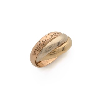 CHANEL Soft ring in 18k yellow gold (750‰) with oval gourmette links adorned with a cabochon sapphire