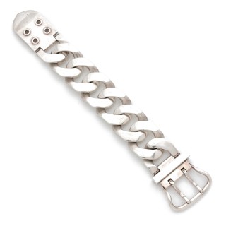 Bracelet in 18k grey gold (750‰) with tubogaz links adorned with close-set round diamonds including one more important in the centre