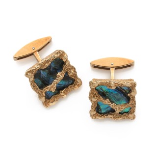 Pair of earrings in 14k yellow gold (585‰) holding two rectangul ...