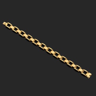 Chaîne giletière en or jaune 750‰ à maillons triangulaires ajourés.Poids : 32,1 g
