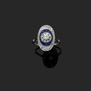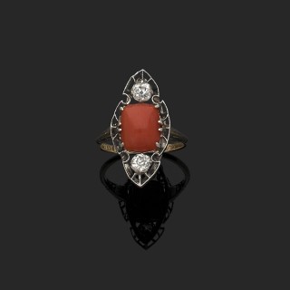 Bague Pompadour ancienne en or jaune 750‰ et platine 850‰ centré ...