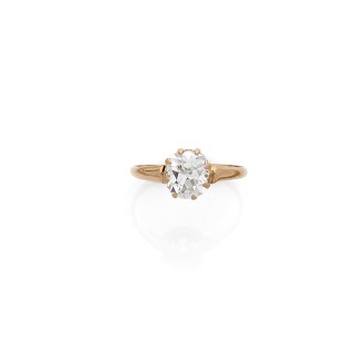 Bague en or jaune 750‰ ornée d'un diamant coussin de taille anci ...