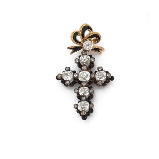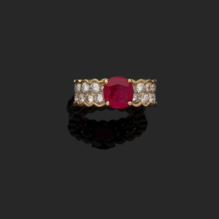 Bague Pompadour ancienne en or jaune 750‰ et platine 850‰ centrée d'un diamant taille ancienne calibrant 0,95 carat environ, dans un...