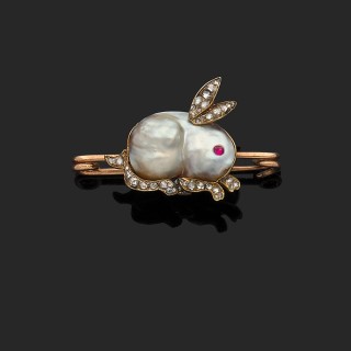 Bague ancienne en or de deux tons 750‰ ornée d'une perle probabl ...