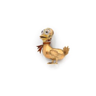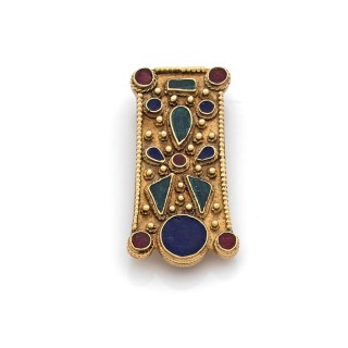 Broche barrette en or jaune 750‰ ciselé ornée de filets d'émail ...