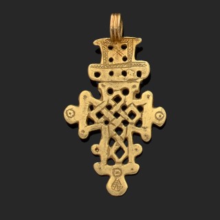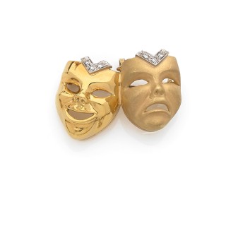 Broche/Pendentif en or jaune 750‰ à décor de deux masques de thé ...